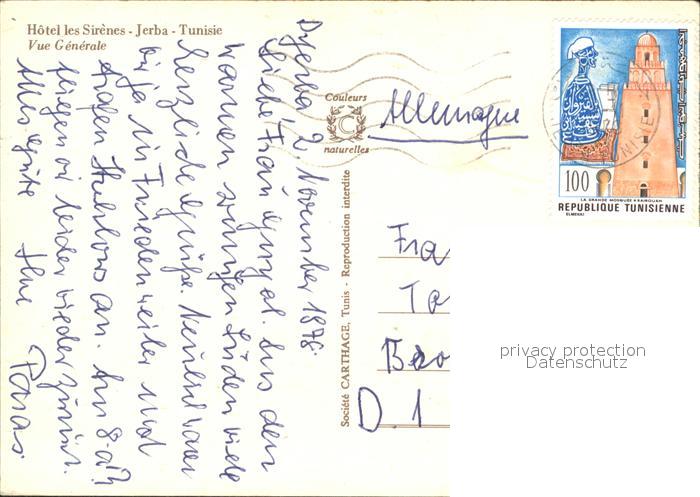 alte Postkarte Djerba Hotel Les Sirenes Fliegeraufnahme Tennis postalisch gelaufen