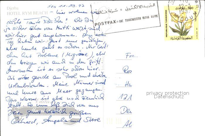 alte Postkarte Djerba Hotel Rym Beach postalisch gelaufen Erhaltung siehe scans