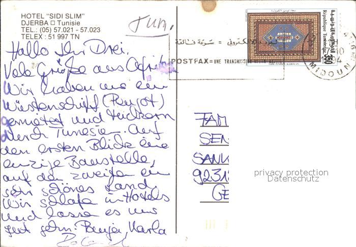 alte Postkarte Djerba Hotel Sidi Slim postalisch gelaufen Erhaltung siehe scans
