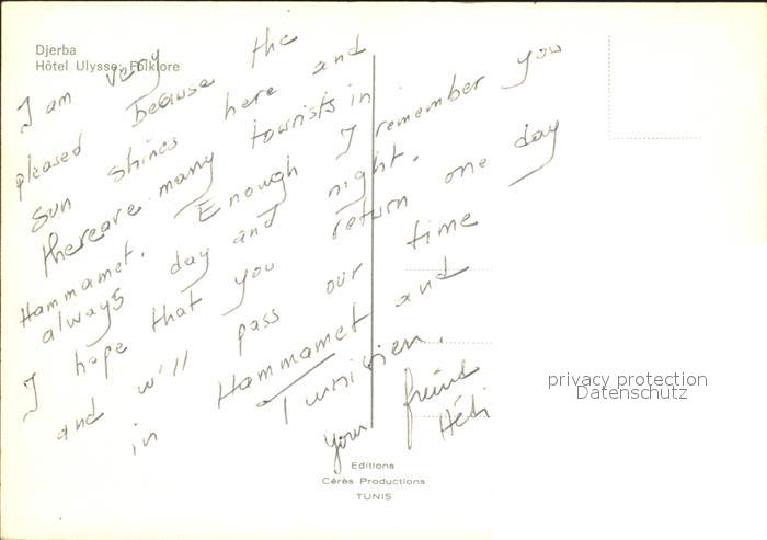 Djerba Hotel Ulysse Folklore postalisch nicht gelaufen Erhaltung siehe scans