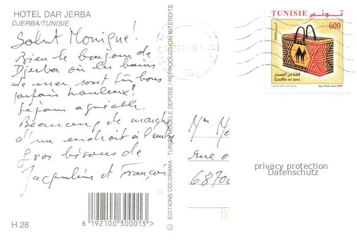 74015136 old postcard Djerba Jerba Tunesie Hôtel Dar Jerba Club Marmara Piscine postalisch gelaufen Erhaltung siehe scans [FriedD77] KatCode: 18520