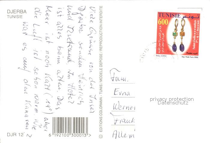 alte Postkarte Djerba Kutsche postalisch gelaufen Erhaltung siehe scans