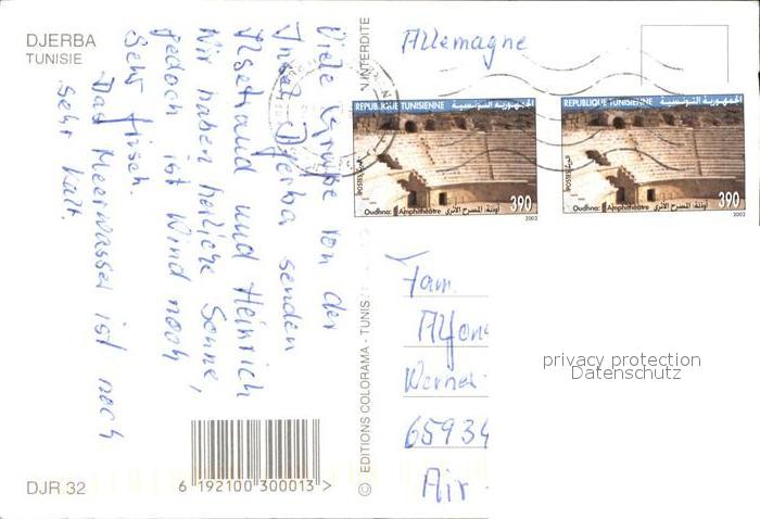alte Postkarte Djerba Strand Fischerboot postalisch gelaufen Erhaltung siehe scans