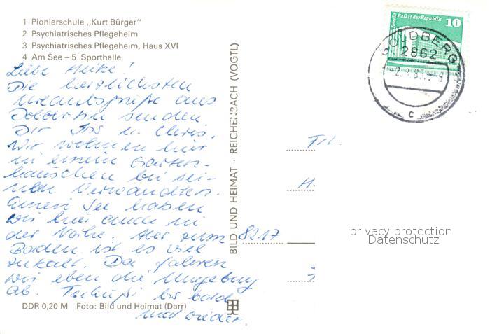 73868551 alte Postkarte Dobbertin Pionierschule Kurt Buerger Psych Pflegeheim Haus XVI Am See Sporthalle postalisch gelaufen Erhaltung siehe scans [WerneD78] KatCode: 11110013060015