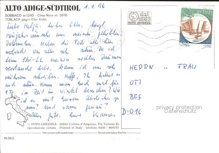 old postcard Dobbiaco Pustertal Suedtirol Cima Nove Toblach Elfer Kofel postalisch gelaufen Erhaltung siehe scans