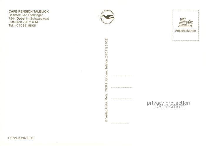 73226204 Dobel Schwarzwald Cafe Pension Talblick Landschaftspanorama postalisch nicht gelaufen Erhaltung siehe scans [FriedD77] KatCode: 11110008235018
