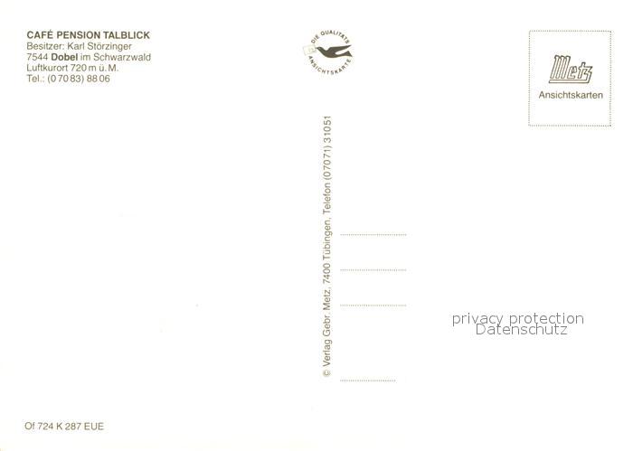 73226218 Dobel Schwarzwald Cafe Pension Talblick Landschaftspanorama postalisch nicht gelaufen Erhaltung siehe scans [FriedD77] KatCode: 11110008235018