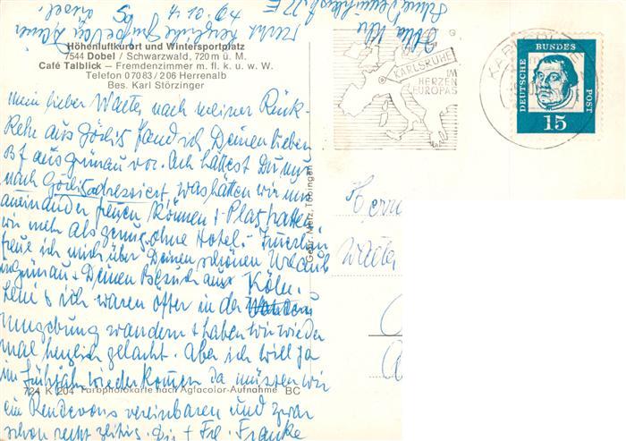 73897579 alte Postkarte Dobel Schwarzwald Cafe Talblick postalisch gelaufen Erhaltung siehe scans [WerneD78] KatCode: 11110008235018