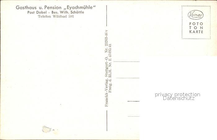 71953139 Dobel Schwarzwald Eyachmuehle Gasthaus Pension postalisch nicht gelaufen Erhaltung siehe scans KatCode: 11110008235018