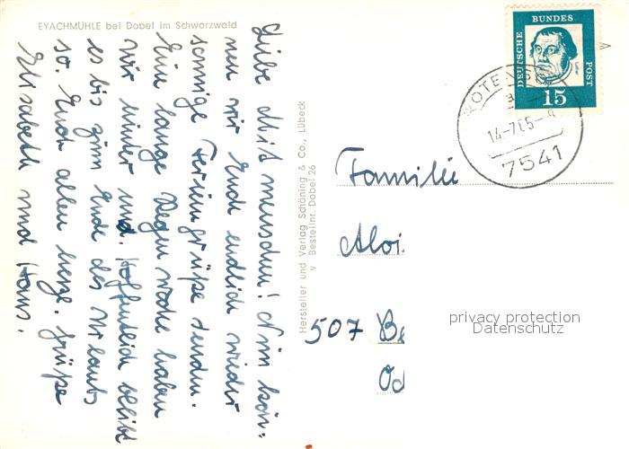 73017735 alte Postkarte Dobel Schwarzwald Eyachmuehle postalisch gelaufen Erhaltung siehe scans [WerneD78] KatCode: 11110008235018