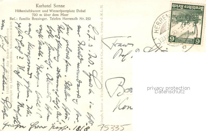 73749459 alte Postkarte Dobel Schwarzwald Fliegeraufnahme postalisch gelaufen Erhaltung siehe scans [WerneD78] KatCode: 11110008235018