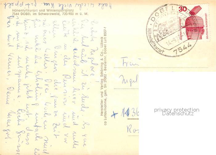73093071 alte Postkarte Dobel Schwarzwald Fliegeraufnahme postalisch gelaufen Erhaltung siehe scans [KathaD81] KatCode: 11110008235018