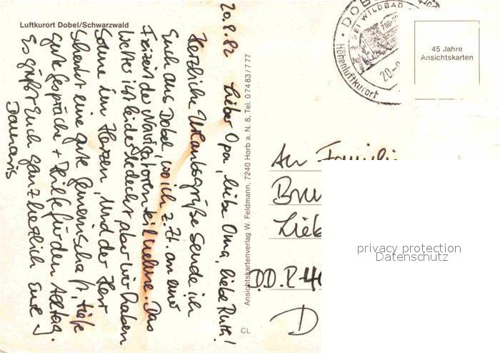 72824914 alte Postkarte Dobel Schwarzwald Fliegeraufnahme postalisch gelaufen Erhaltung siehe scans [LiesaD40] KatCode: 11110008235018
