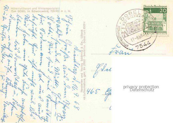 74086670 alte Postkarte Dobel Schwarzwald Fliegeraufnahme postalisch gelaufen Erhaltung siehe scans [WerneD78] KatCode: 11110008235018