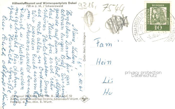 73759505 alte Postkarte Dobel Schwarzwald Fliegeraufnahme Gesamtansicht postalisch gelaufen Erhaltung siehe scans [LiesaD40] KatCode: 11110008235018