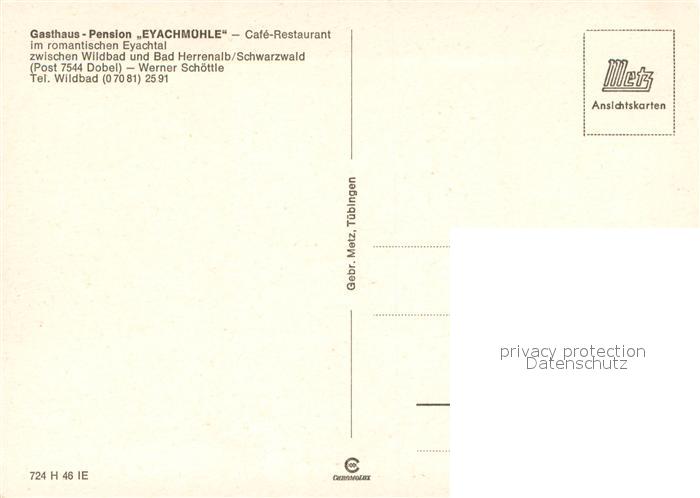 73644318 Dobel Schwarzwald Gasthaus Pension Eyachmuehle Terrasse Partie am Bach postalisch nicht gelaufen Erhaltung siehe scans [FriedD77] KatCode: 11110008235018