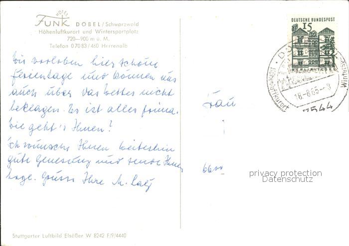 72104731 alte Postkarte Dobel Schwarzwald Hotel Funk Fliegeraufnahme postalisch gelaufen Erhaltung siehe scans KatCode: 11110008235018