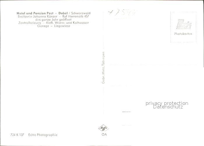 41775631 Dobel Schwarzwald Hotel Pension Post postalisch nicht gelaufen Erhaltung siehe scans KatCode: 11110008235018