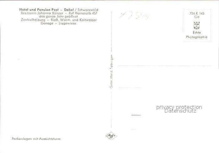 41775614 Dobel Schwarzwald Hotel Pension Post Parkanlagen Aussichtsturm postalisch nicht gelaufen Erhaltung siehe scans KatCode: 11110008235018