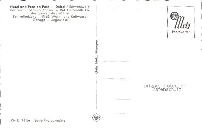 41801173 Dobel Schwarzwald Hotel Pension Post Speisesaal postalisch nicht gelaufen Erhaltung siehe scans KatCode: 11110008235018
