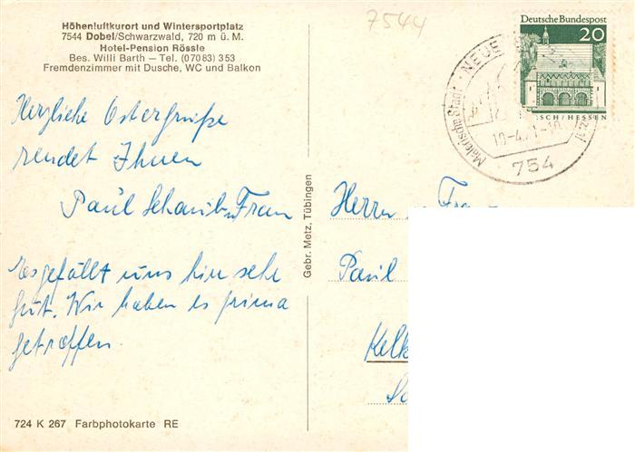 73889293 alte Postkarte Dobel Schwarzwald Hotel Pension Roessle postalisch gelaufen Erhaltung siehe scans [WerneD78] KatCode: 11110008235018