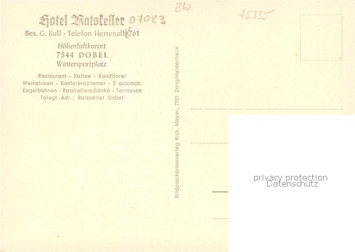 73648849 Dobel Schwarzwald Hotel Ratskeller Cafe Restaurant postalisch nicht gelaufen Erhaltung siehe scans [FriedD77] KatCode: 11110008235018
