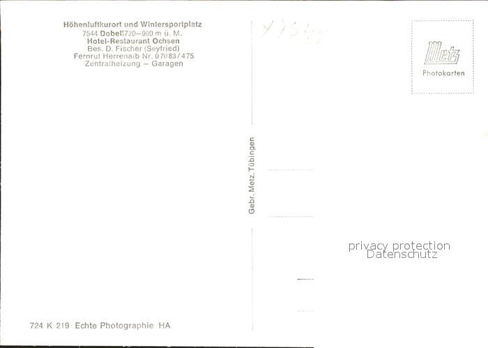 41801286 Dobel Schwarzwald Hotel Restaurant Ochsen postalisch nicht gelaufen Erhaltung siehe scans KatCode: 11110008235018