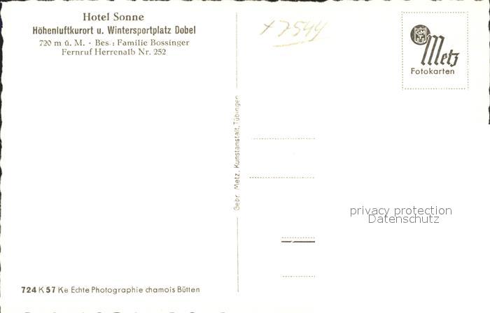 41815523 Dobel Schwarzwald Hotel Sonne Hoehenluftkurort Wintersportplatz postalisch nicht gelaufen Alte Ansichtskarte Postkarte hz_F Katcode 11110008235018