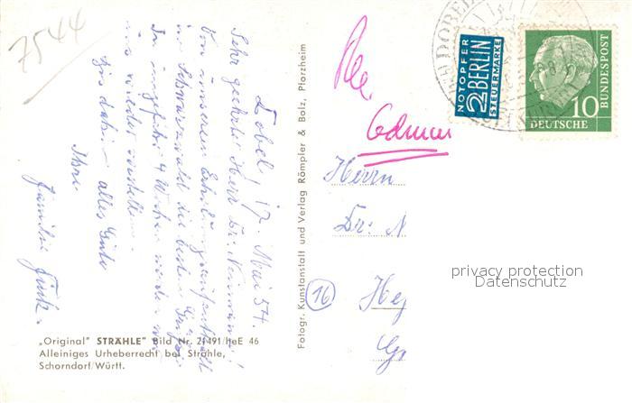 73595626 alte Postkarte Dobel Schwarzwald Luftkurort Fliegeraufnahme Original Straehle Bild Nr. 21491 postalisch gelaufen Erhaltung siehe scans [FriedD77] KatCode: 11110008235018