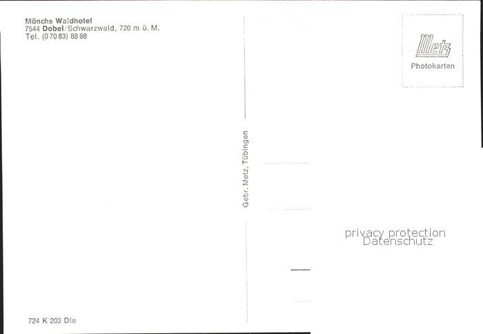 41775607 Dobel Schwarzwald Moenchs Waldhotel postalisch nicht gelaufen KatCode: 11110008235018