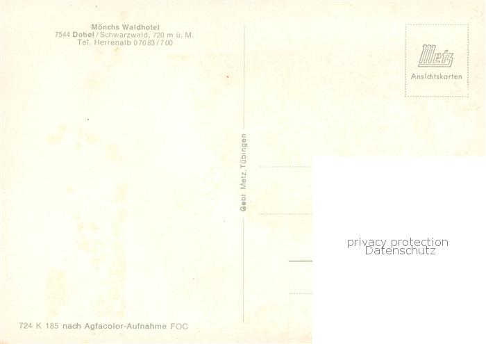 73812852 Dobel Schwarzwald Moenchs Waldhotel postalisch nicht gelaufen Erhaltung siehe scans [WerneD78] KatCode: 11110008235018