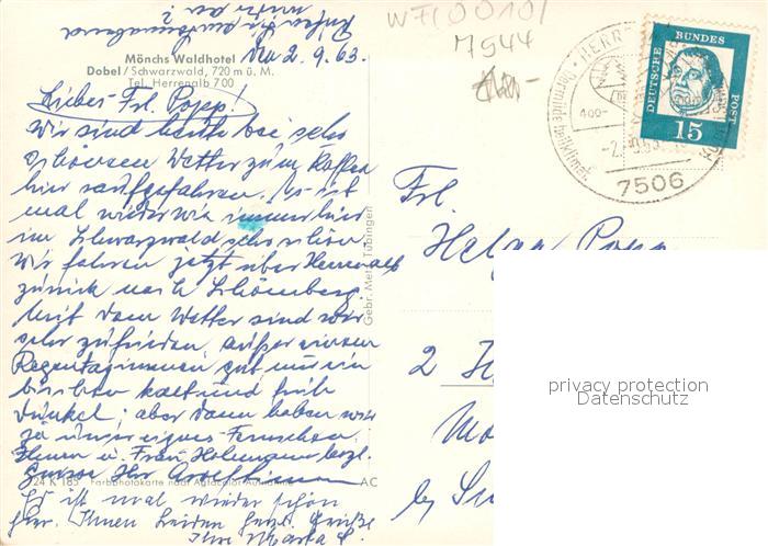 73687267 alte Postkarte Dobel Schwarzwald Moenchs Waldhotel postalisch gelaufen Erhaltung siehe scans [FriedD77] KatCode: 11110008235018