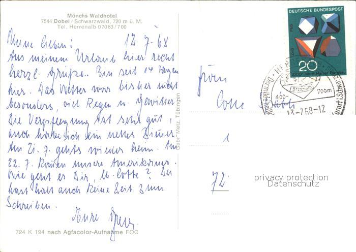 72427009 alte Postkarte Dobel Schwarzwald Moenchs Waldhotel postalisch gelaufen Erhaltung siehe scans KatCode: 11110008235018
