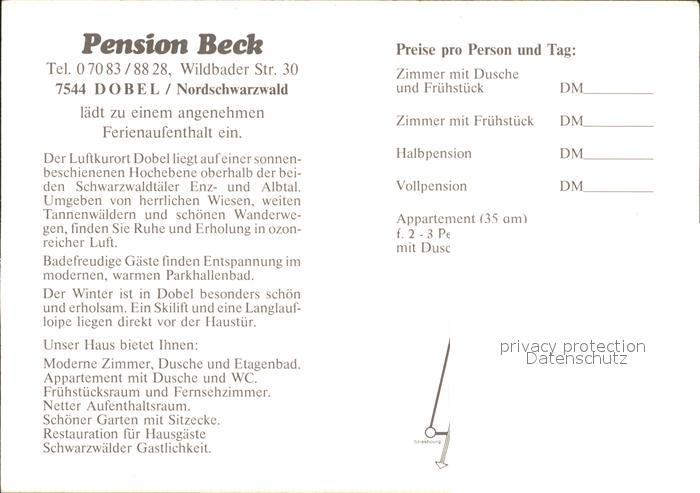 71952639 Dobel Schwarzwald Pension Beck postalisch nicht gelaufen Erhaltung siehe scans KatCode: 11110008235018