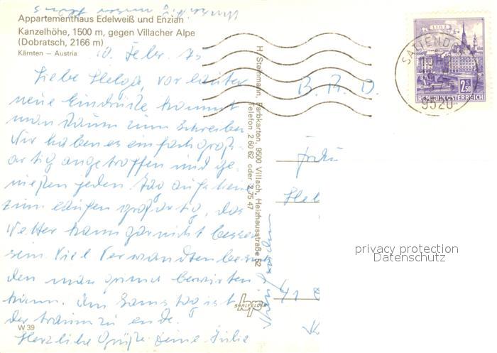 73176109 alte Postkarte Dobratsch Kaernten Appartementhaus Edelweiss Enzian Kanzelhoehe postalisch gelaufen Erhaltung siehe scans [NatalD47] KatCode: 11390