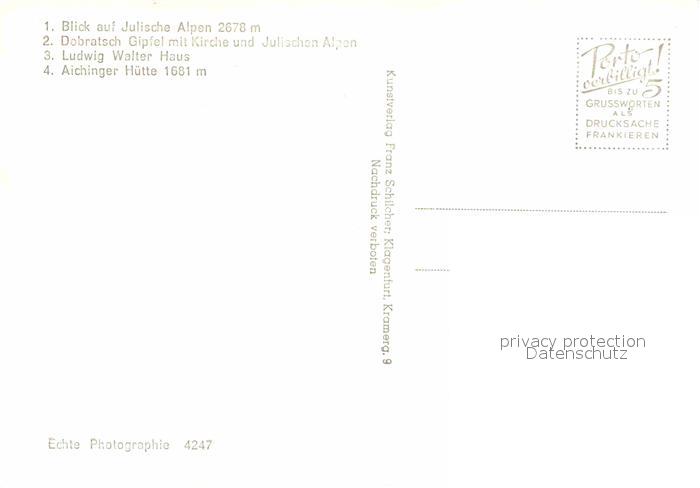 72798182 Dobratsch Kaernten Julische Alpen Gipfel Kirche Ludwig Walter Haus Aichinger Huette postalisch nicht gelaufen Erhaltung siehe scans [AndreD76] KatCode: 11390