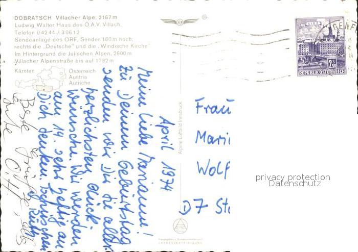 71822397 alte Postkarte Dobratsch Kaernten Ludwig Walter Haus Alpenpanorama postalisch gelaufen Erhaltung siehe scans KatCode: 11390