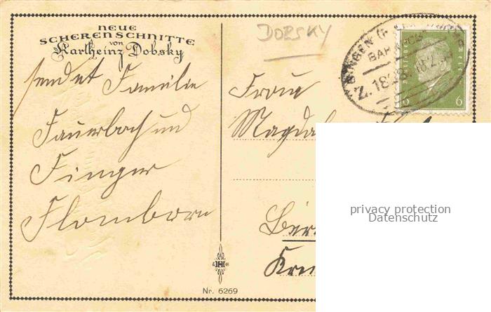 74105358 alte Postkarte DOBSKY Karlheinz SCHATTENBILDKARTE Shadowbolt Scherenschnitt-AK Nr. 6269 Glueckwunsch Geburtstag Kind postalisch gelaufen Erhaltung siehe scans [IrynaD87] KatCode: 22080000001800