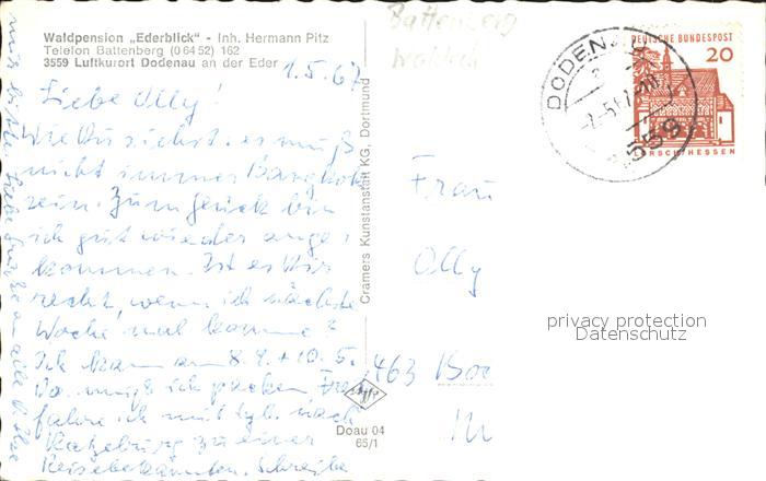 72174107 alte Postkarte Dodenau Waldpension Ederblick postalisch gelaufen Erhaltung siehe scans KatCode: 11110006635004