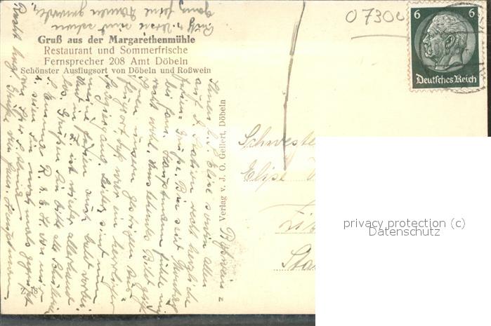 41461216 alte Postkarte Doebeln Restaurant Margarethenmuehle Sommerfrische postalisch gelaufen Erhaltung siehe scans KatCode: 11110014375030