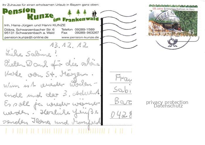 74100798 alte Postkarte Doebra Oberfranken Pension Kunze im Frankenwald Fremdenzimmer Ortseinfahrt postalisch gelaufen Erhaltung siehe scans [FriedD77] KatCode: 11110009475169