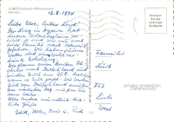 72470143 alte Postkarte Doebriach Millstaettersee Alpenpanorama Fliegeraufnahme postalisch gelaufen Erhaltung siehe scans KatCode: 11390212020630