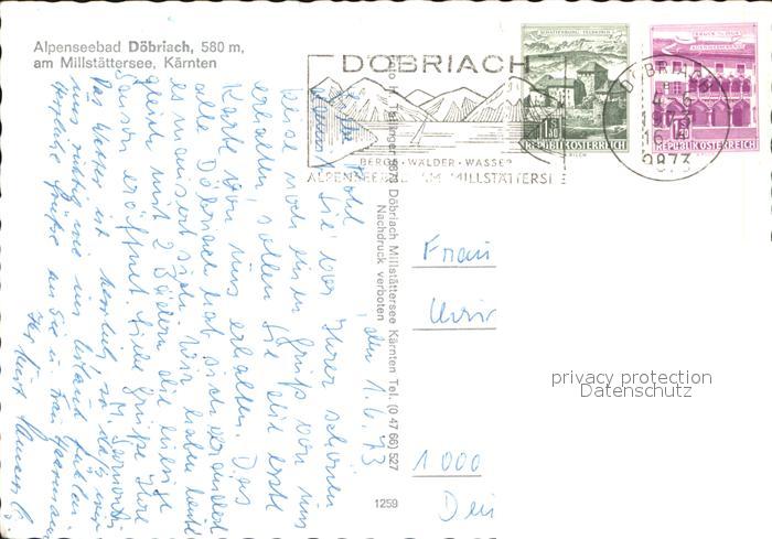 72599803 alte Postkarte Doebriach Millstaettersee Alpenseebad Alpenpanorama Fliegeraufnahme postalisch gelaufen Erhaltung siehe scans [FriedD77] KatCode: 11390212020630