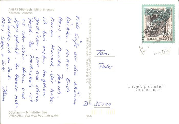 72447279 alte Postkarte Doebriach Millstaettersee Blick auf den See postalisch gelaufen Erhaltung siehe scans KatCode: 11390212020630