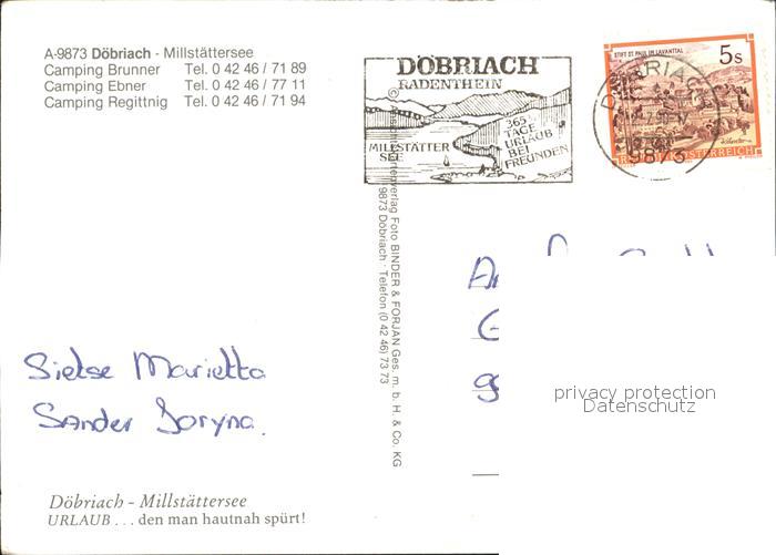 12568838 alte Postkarte Doebriach Millstaettersee Camping Brunner Fliegeraufnahme postalisch gelaufen Erhaltung siehe scans [NatalD47] KatCode: 11390212020630