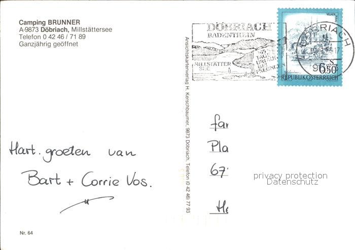 72037627 alte Postkarte Doebriach Millstaettersee Camping Brunner Restaurant Alpen Schwan postalisch gelaufen Erhaltung siehe scans KatCode: 11390212020630