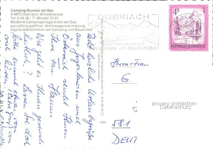 72002179 alte Postkarte Doebriach Millstaettersee Camping Brunner postalisch gelaufen Erhaltung siehe scans KatCode: 11390212020630