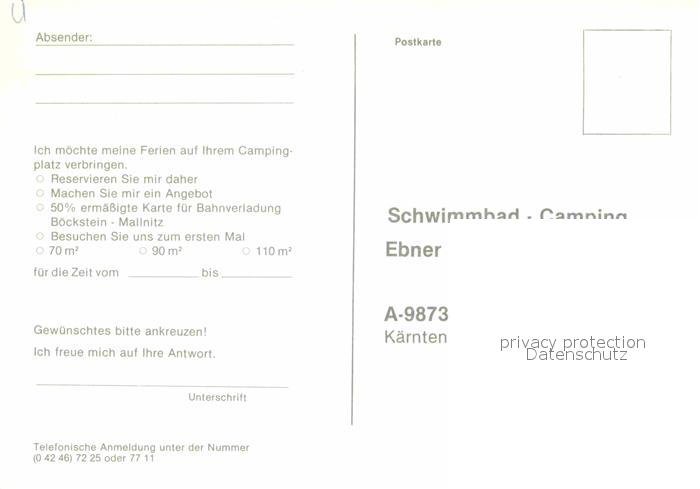 12753527 Doebriach Millstaettersee Camping Ebner postalisch nicht gelaufen Erhaltung siehe scans [AndreD76] KatCode: 11390212020630