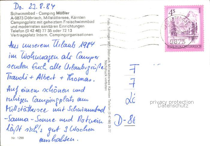 72035312 alte Postkarte Doebriach Millstaettersee Camping Moessler Fliegeraufnahme postalisch gelaufen Erhaltung siehe scans KatCode: 11390212020630