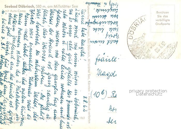 73161558 alte Postkarte Doebriach Millstaettersee Fliegeraufnahme Autocamp postalisch gelaufen Erhaltung siehe scans [KathaD81] KatCode: 11390212020630